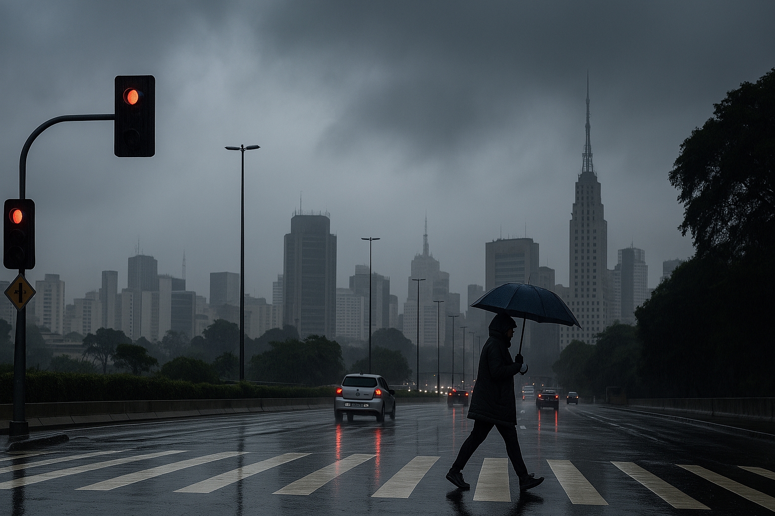 A cidade de São Paulo amanhece nesta terça-feira (24) sob forte influência de uma massa de ar frio e instabilidade. O dia começou com céu nublado e temperaturas em torno de 13 °C, podendo chegar aos 18 °C no período da tarde. A sensação de frio deve permanecer ao longo de todo o dia.
